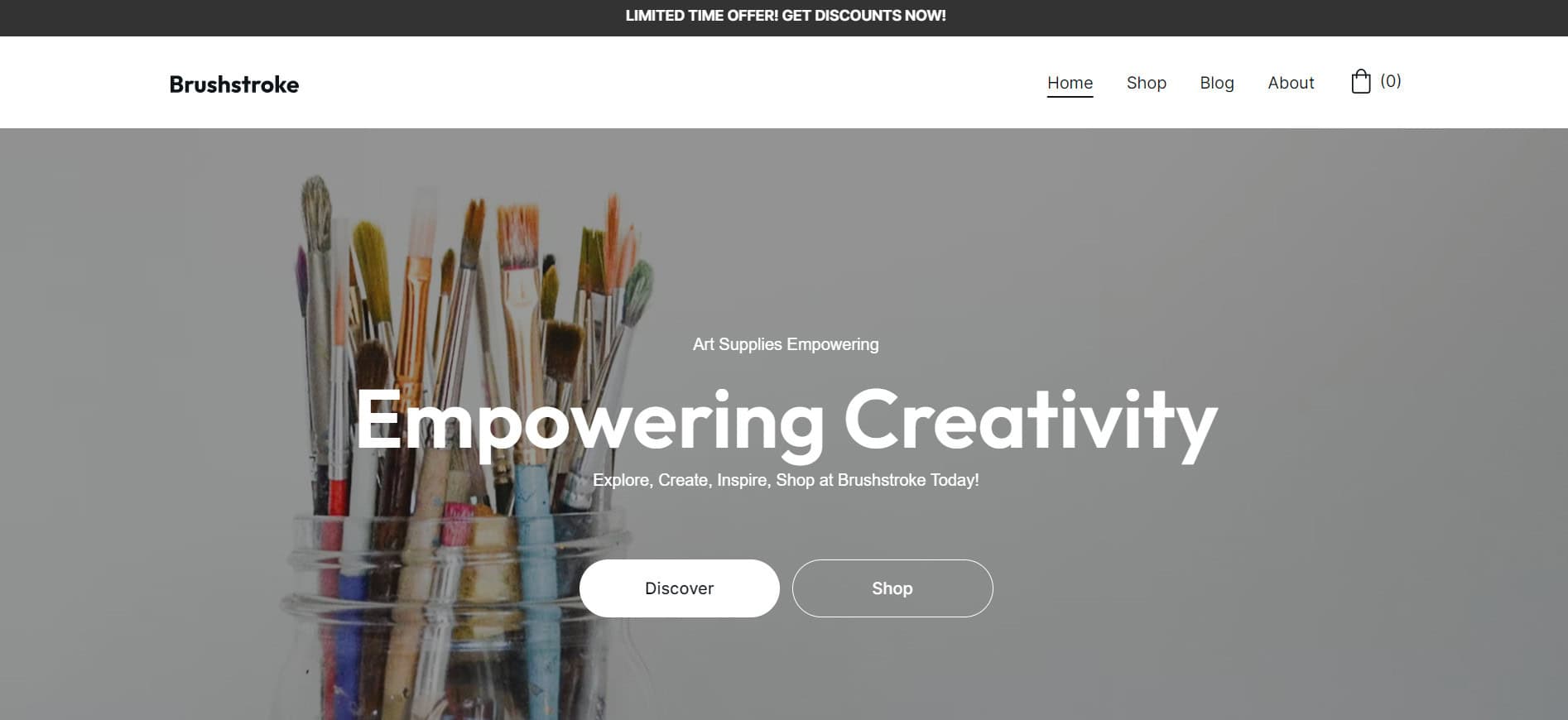Prompt: Brushstroke caters to artists of all levels, offering a diverse range of art supplies. We believe in fostering creativity and exploration, empowering artists to bring their visions to life.
