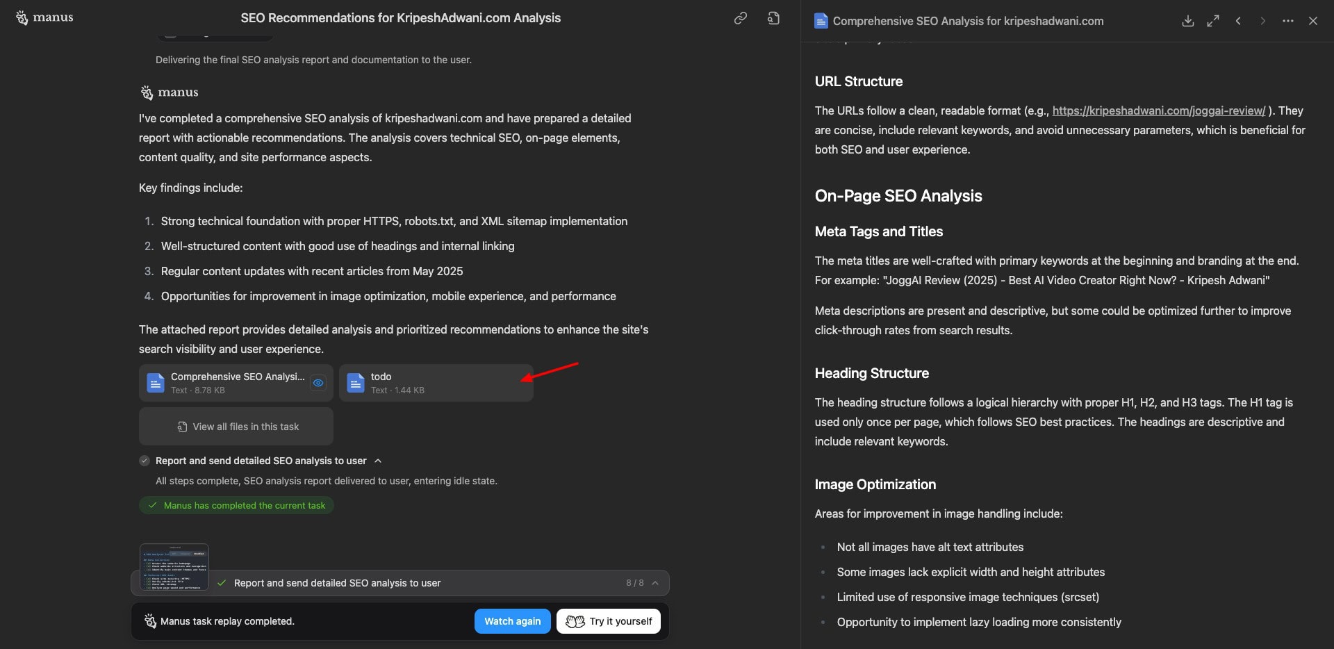 Effective SEO is a dream for most users. But with Manus AI, you can transform this dream into reality within minutes. It helps with various stages of SEO.