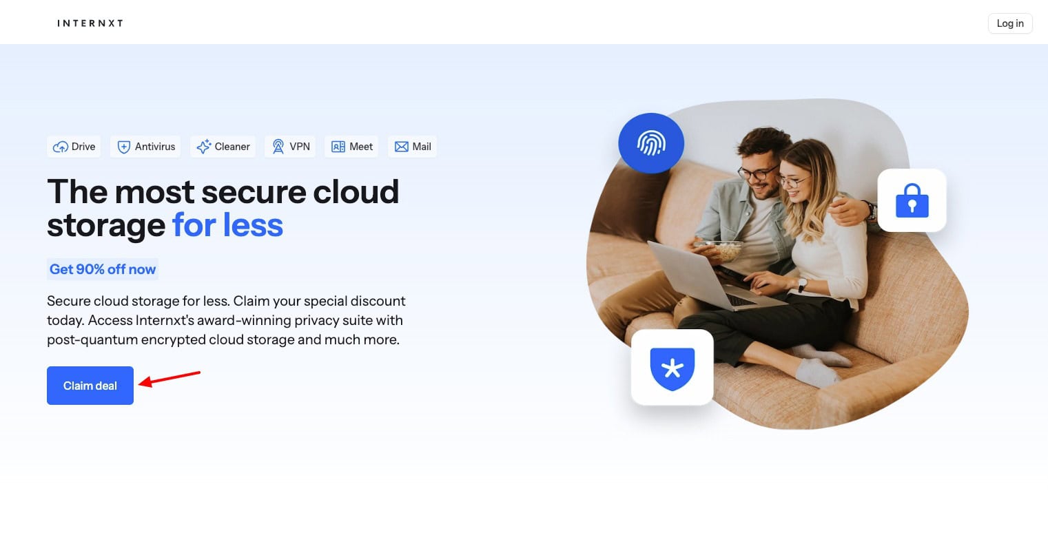 First, we will visit the Internxt official website using my link and click on the ‘Claim Deal’ button.