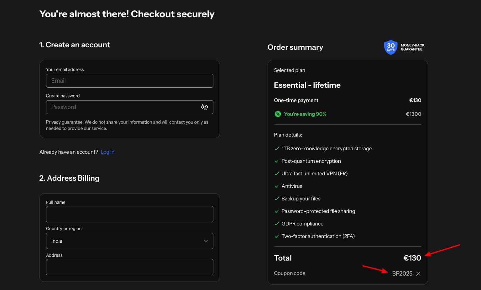 The coupon code will be auto-applied at checkout, which will give you a 90% discount on your purchase. This is how you can avail the Black Friday Deal of Internxt.