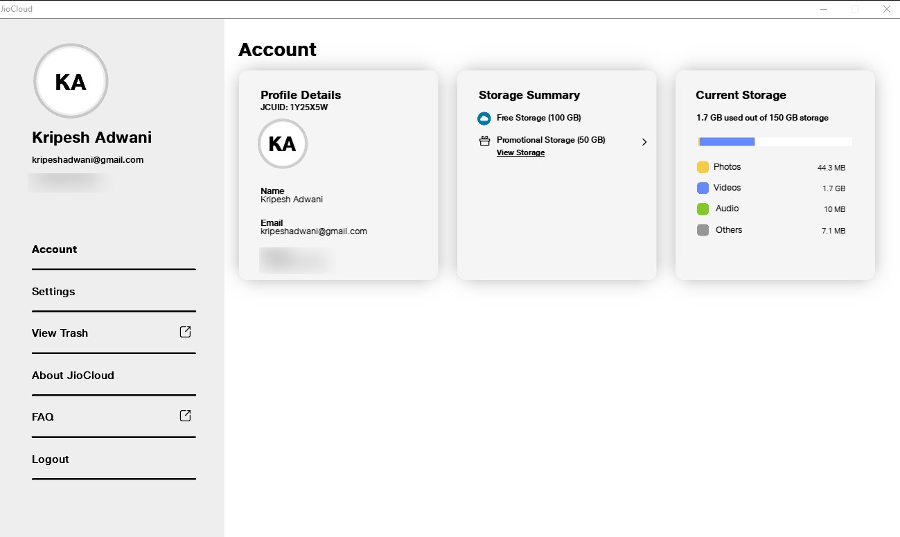 JioCloud features functional apps for all devices, including Windows, Mac, Android, iOS, TV, and JioPhone. The desktop app is lightweight and doesn’t take up much space on your device. However, it’s a pretty limited app that only allows you to access settings and account details.