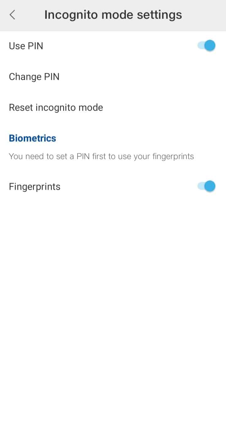 - You can secure Incognito Mode and Incognito Bookmarks with passwords/PIN/Biometrics.