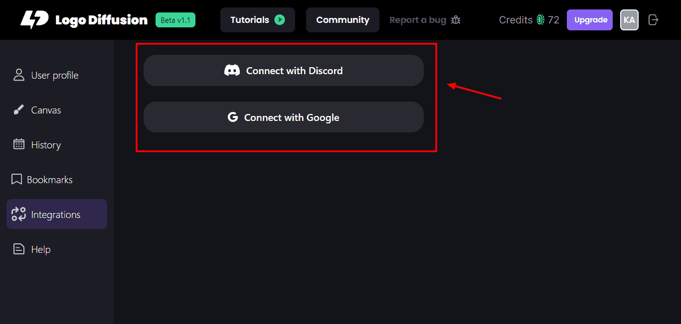You get to connect your Google and Discord accounts with Logo Diffusion. However, the integration doesn’t work at the moment. I hope they add functionality to these integrations soon.