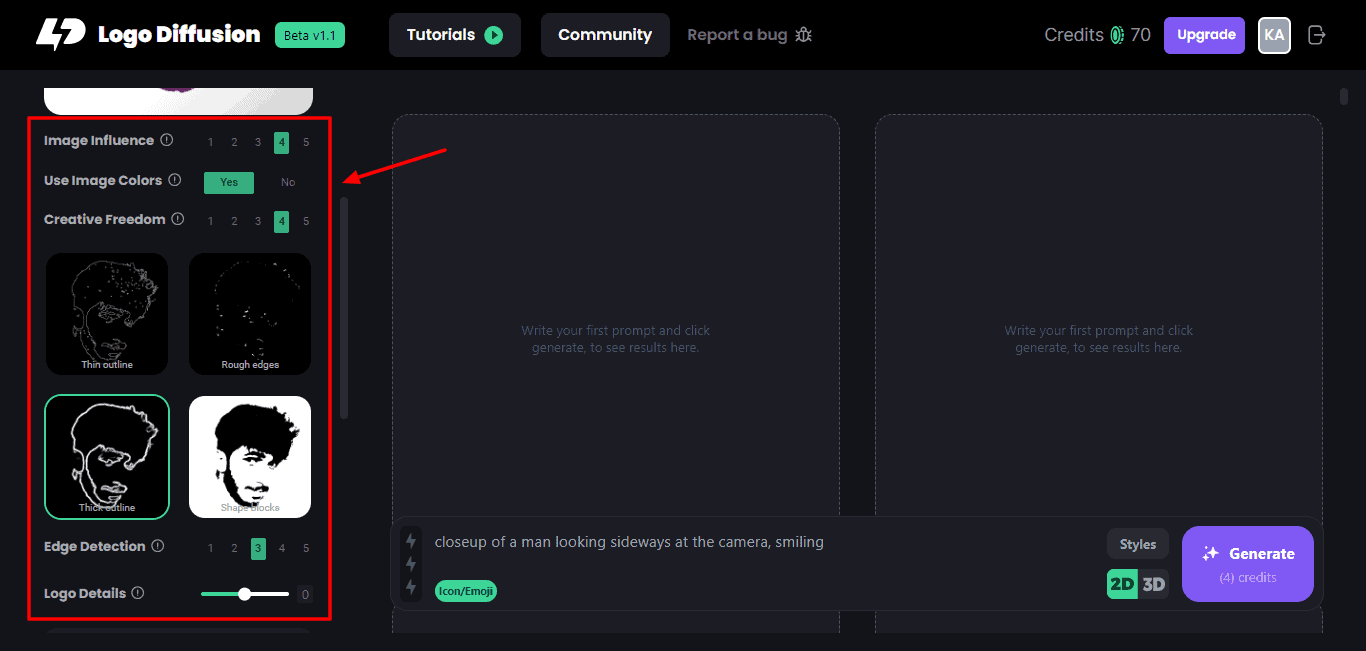 You can also experiment with different settings and outline styles. For example, thin outlines for sketches or portraits and thick outlines for icons, logos, cartoon characters, etc.