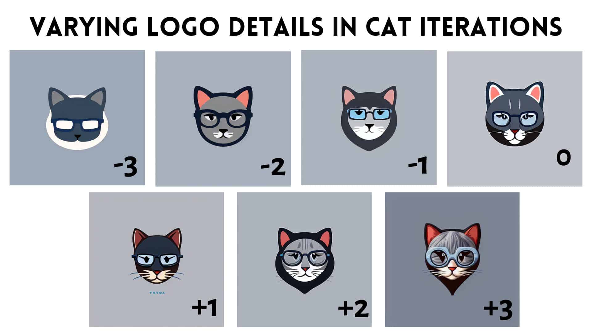 - Logo Details: You can choose the degree of detail you need on your logo on a scale of -3 to +3. The following image illustrates the varying details in the logo of a cat from -3 to +3.