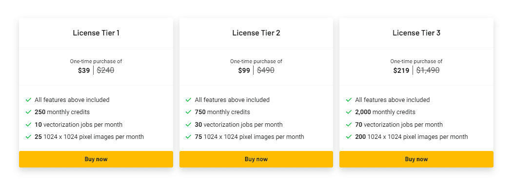 AppSumo is currently running its Black Friday Sale and Logo Diffusion is being offered at steep discounts on their platforms. So, right now, you can get Logo Diffusion for merely $39. The following image shows the three License Tiers along with their major features.