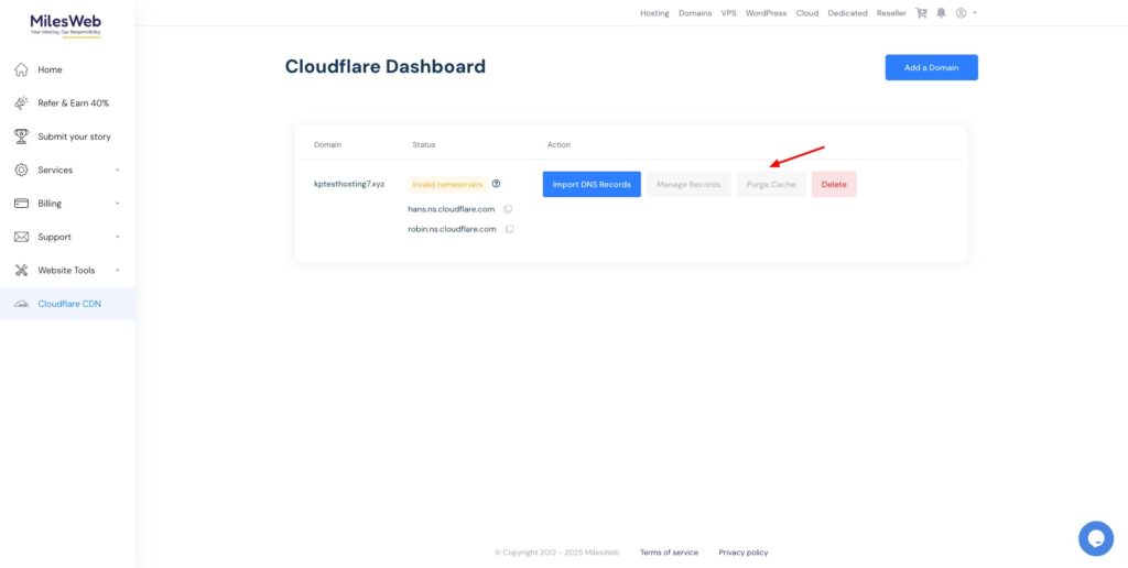 MilesWeb offers the Cloudflare CDN on its hosting plans. However, the users cannot activate it from the dashboard. You need to raise an email ticket to get CDN activated on your plan.