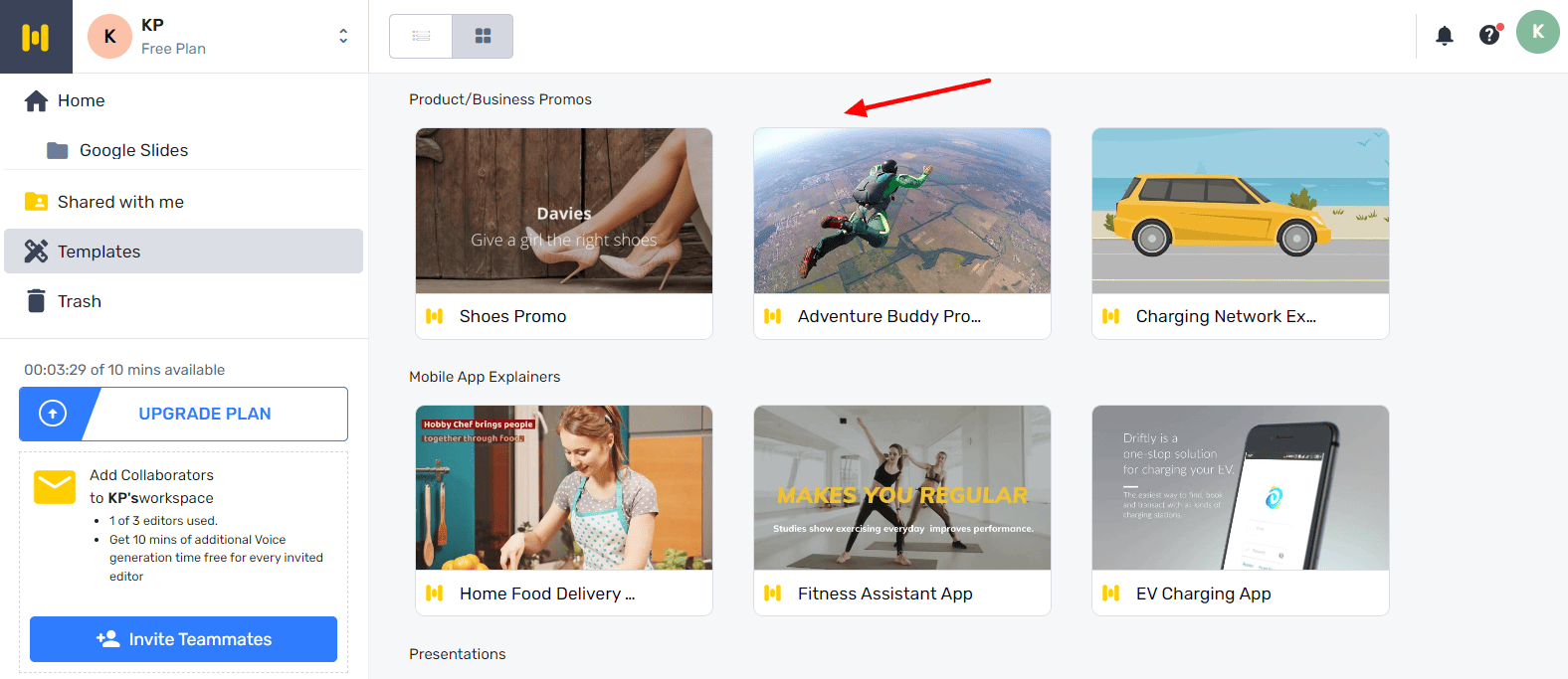 Murf AI also offers 12 professionally designed templates for podcast intros, presentations, mobile app explainers, and product promos. You can clone any of them and customize them as per your project to get instant results!