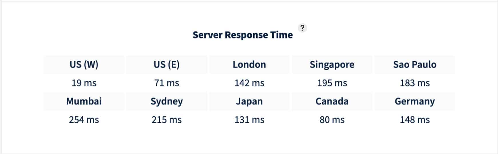 As you can see below, the Server Response Time was quite good in the US (19 ms) and Canada (80 ms) regions. Whereas it kept on increasing as we moved towards the Asian regions like Japan, Singapore, Mumbai, etc.