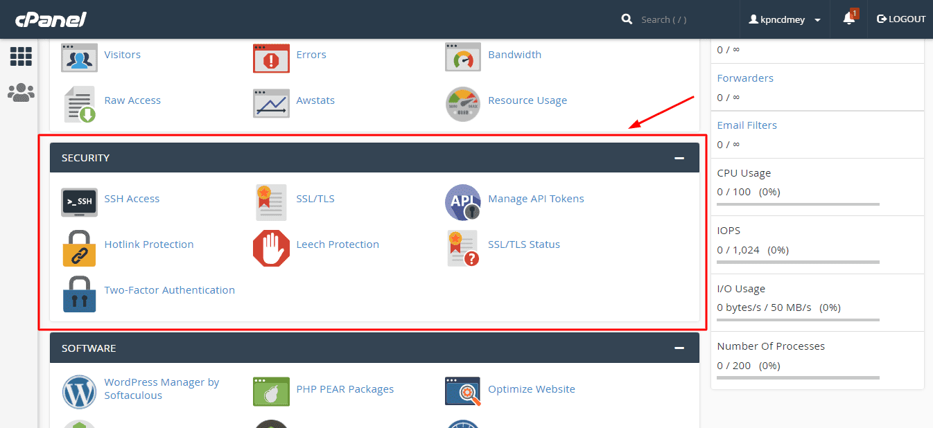 You get the standard cPanel, which is quite intuitive and loaded with a lot of interesting features. You can easily manage your emails, files, databases, domains, security, software, etc, from here.