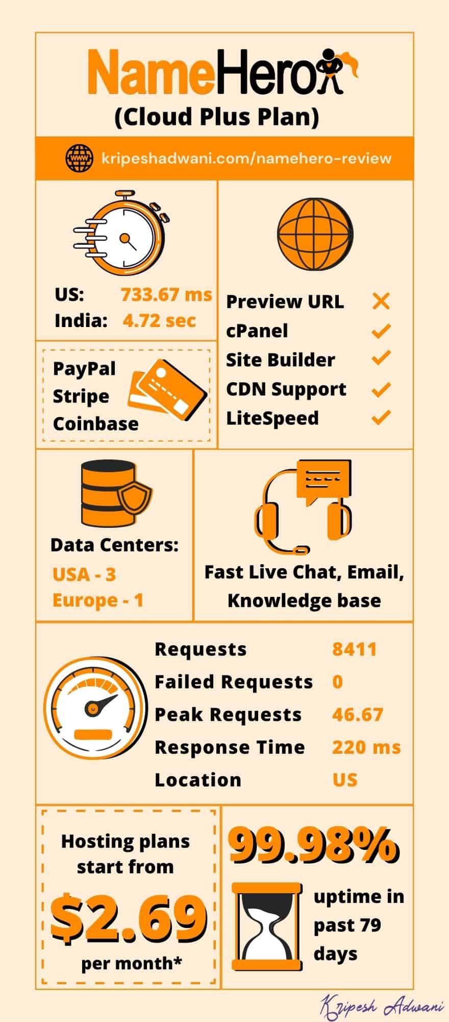Overall, NameHero looks like a decent cloud hosting platform to consider for US-based audiences. It offers good speeds, uptime, load handling, and customer support. However, for backups, migrations, inode count, or data centers, it did not impress me as much.