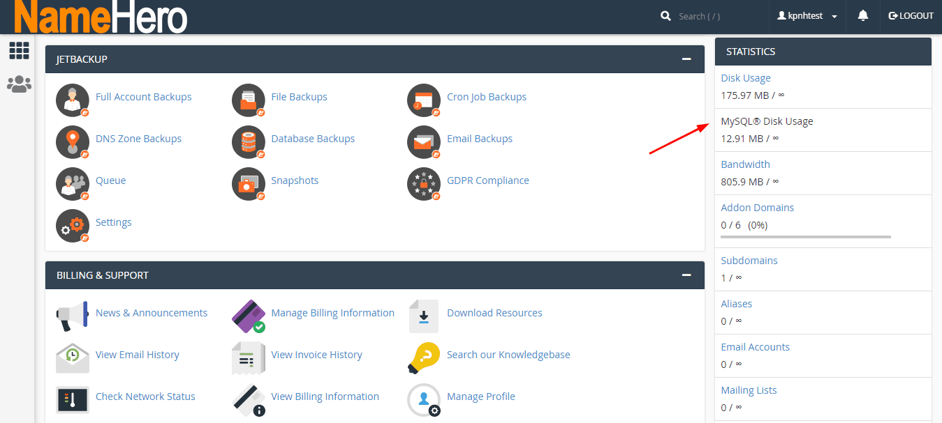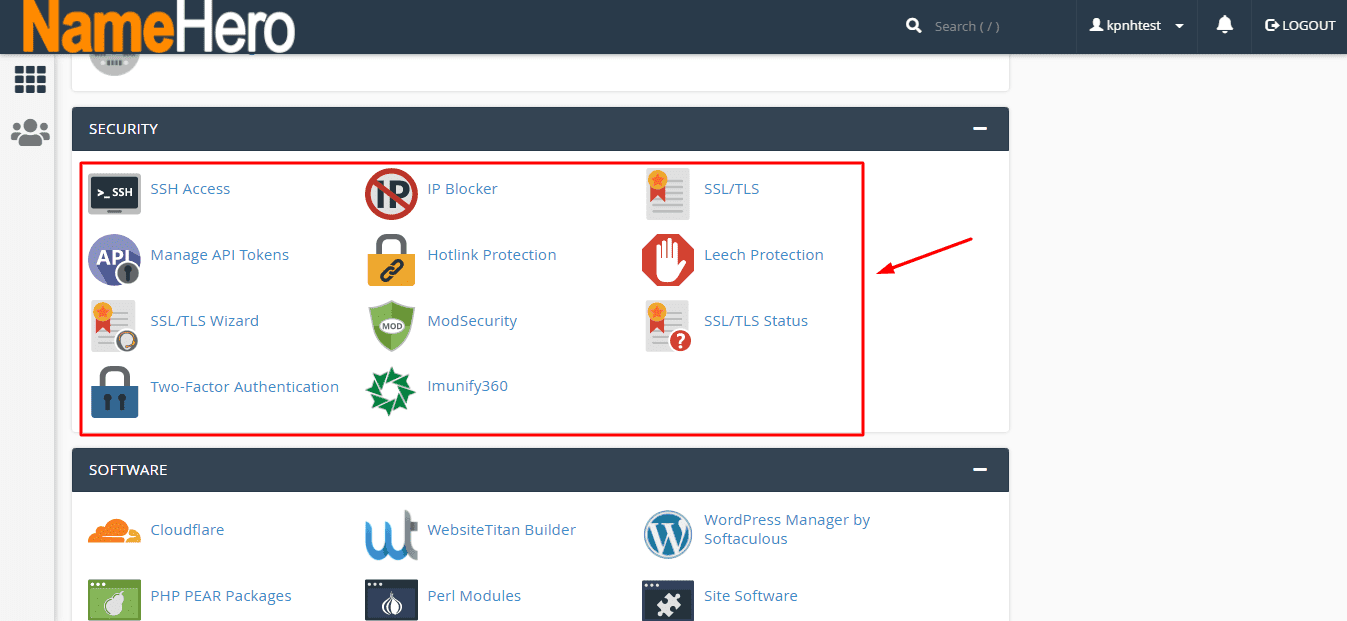 This panel has all the necessary features you would require to manage your hosting. You get to see the cPanel version 100 (Build 9) with NameHero.
