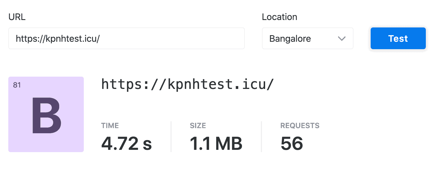 When I tested the speeds from the Bangalore location in India, the speeds came out to be 4.72 sec. This is a little disappointing. A major reason for these slow speeds is their data centers being in the US, and also because there is no CDN activated by default.
