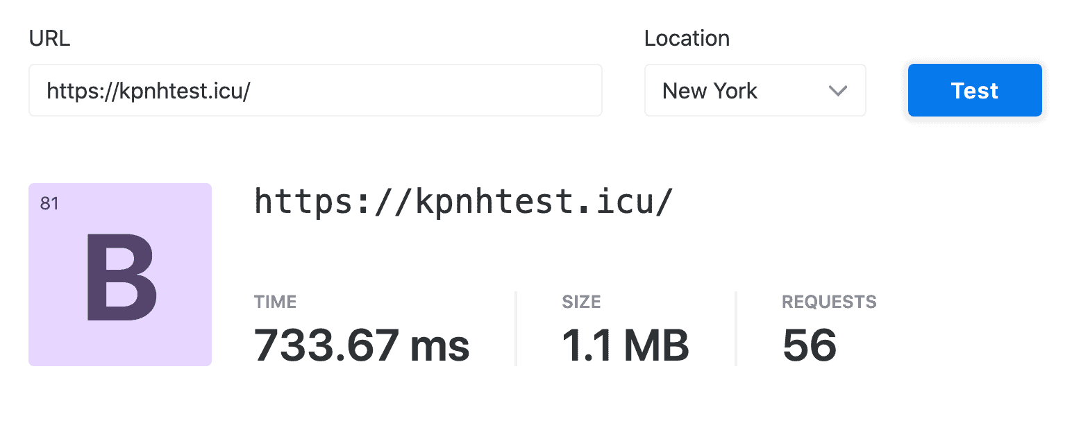 On conducting the speed test from the New York location, I noticed the speeds came out to be 733.67 ms. This is remarkable considering the Litespeed cache plugin has been used in default settings.
