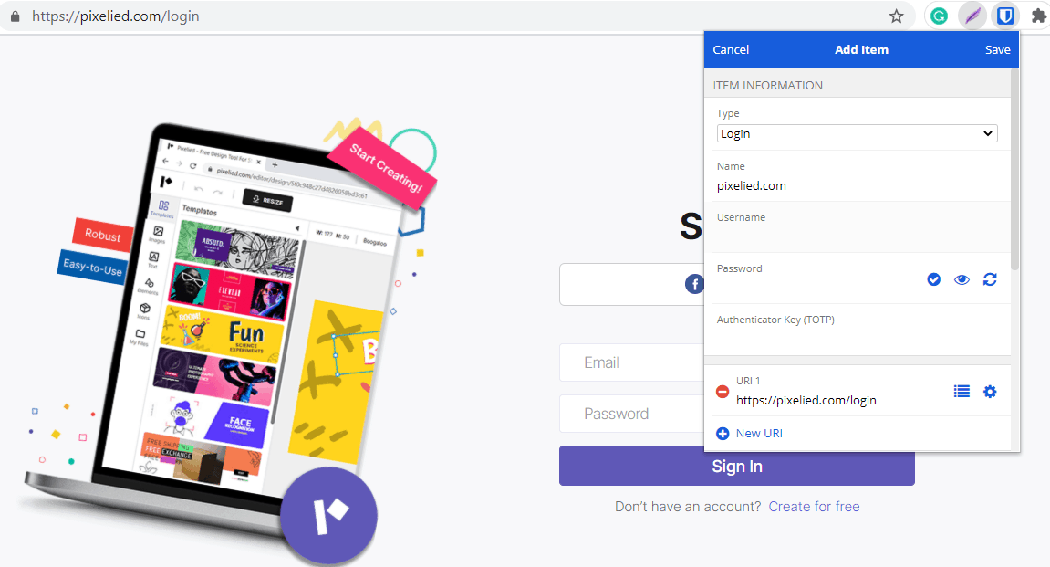 Or you can just go over to a website and add your login information. Bitwarden will capture your details and ask you to save it through a pop-up.