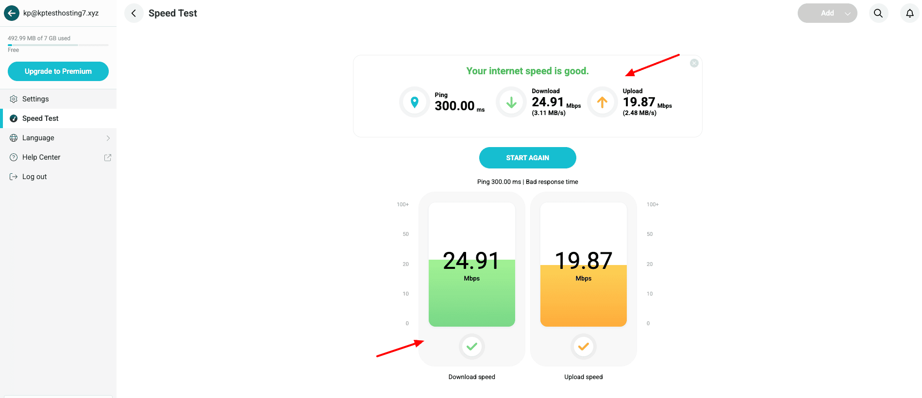 I’m using 5G plan and average download speed 800-850mbps /upload speed 135-150mbps. Luxembourg server also almost same speed, even i tested speed with Pcloud site itself, i got 116mbps.
