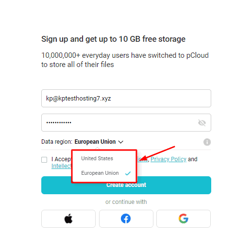 But the best part is that pCloud lets you choose your preferred data center location when you sign up for a new account.