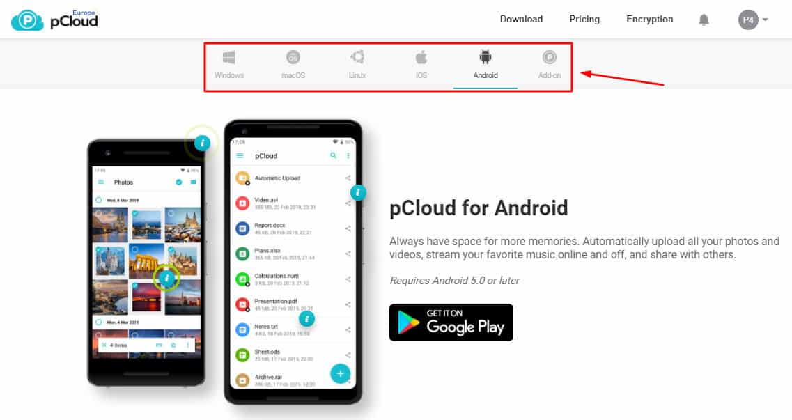pCloud Drive can be accessed by installing the desktop application of pCloud.