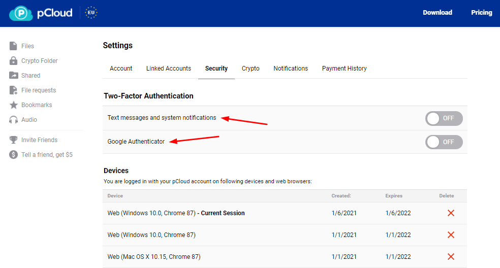 You can enable 2FA on your account and pCloud even offers zero-knowledge encryption in its paid plans. But unfortunately, it comes at an additional cost!