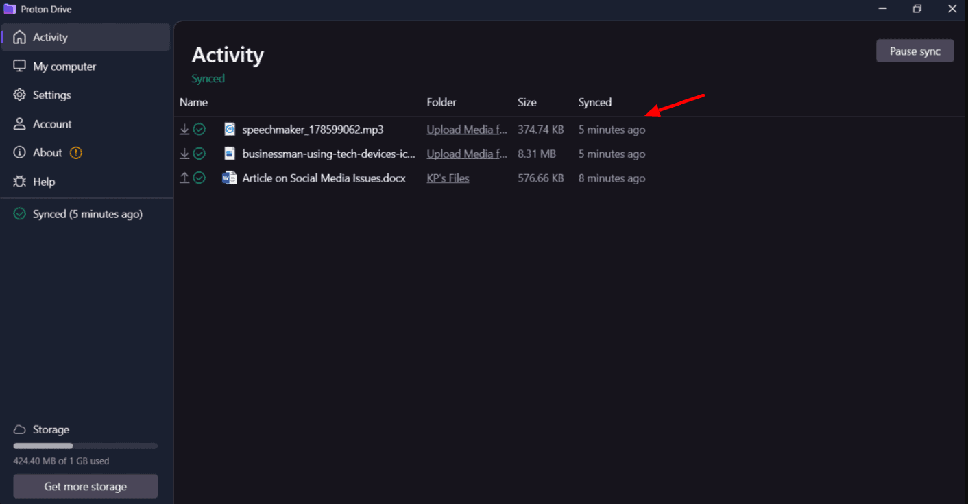 With the Proton Drive desktop app, you can keep the files on your local device synced with your cloud storage. All you have to do is select the folders you wish to sync with the cloud. Now, whenever you add, delete, or update any files, the changes will be synced on all devices.