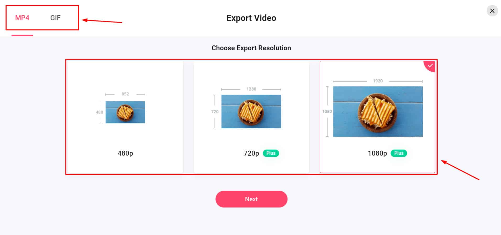 On the free plan, you can download videos in 480P quality. Whereas on the premium plan, you can download them in 1080P! They can also be saved as MP4 or GIF files.