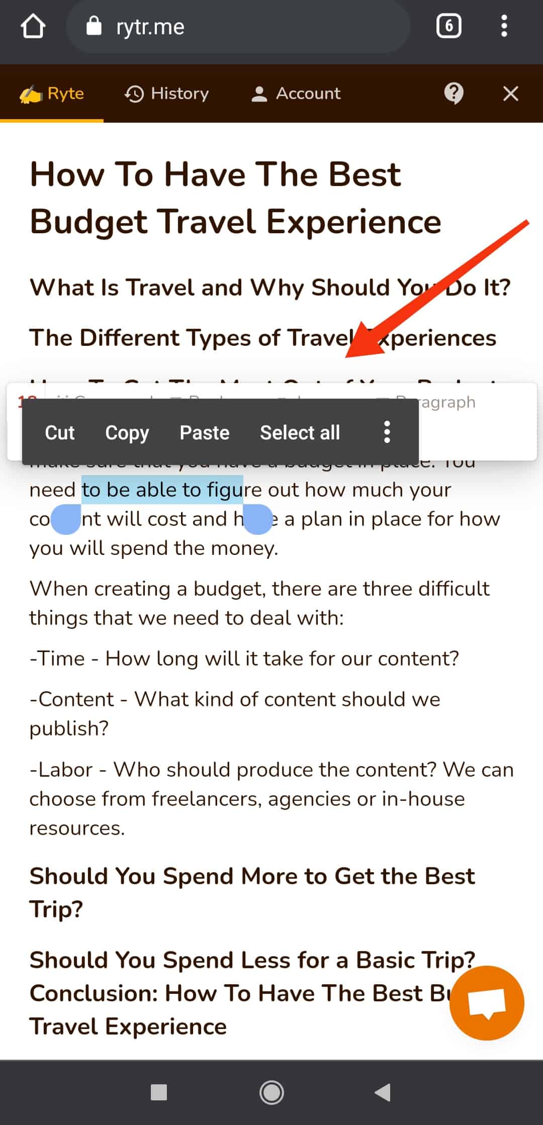 The only issue was the text editing tools overlapping with my mobile’s copy and paste options. Overall, I really found the web and mobile interface of Rytr quite attractive and easy to use.