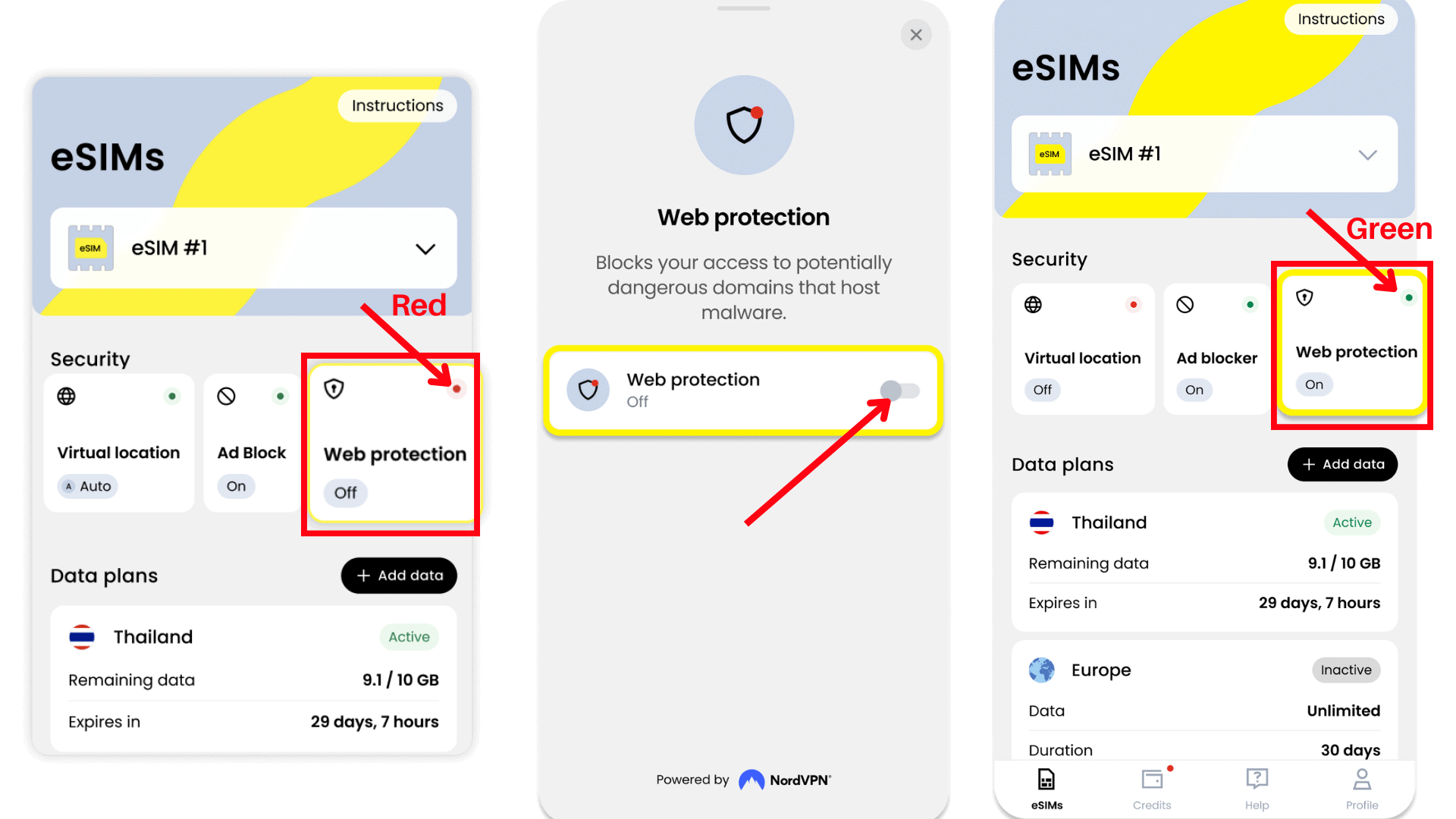 Turn on Web Protection for complete, secure network connectivity. The process is similar to turning on the ad blocker.