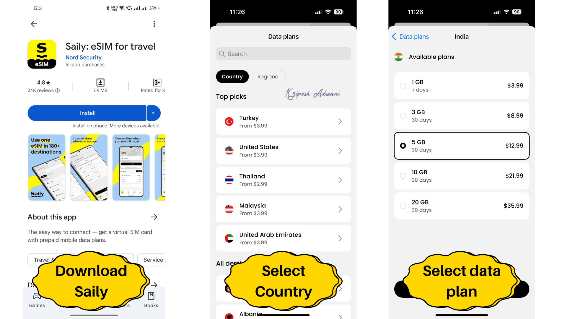 Whether planning an international vacation or attending an urgent business conference, your eSIM needs to be activated before reaching your destination. Wondering how to install and activate Saily? It’s very simple! Just follow these steps: