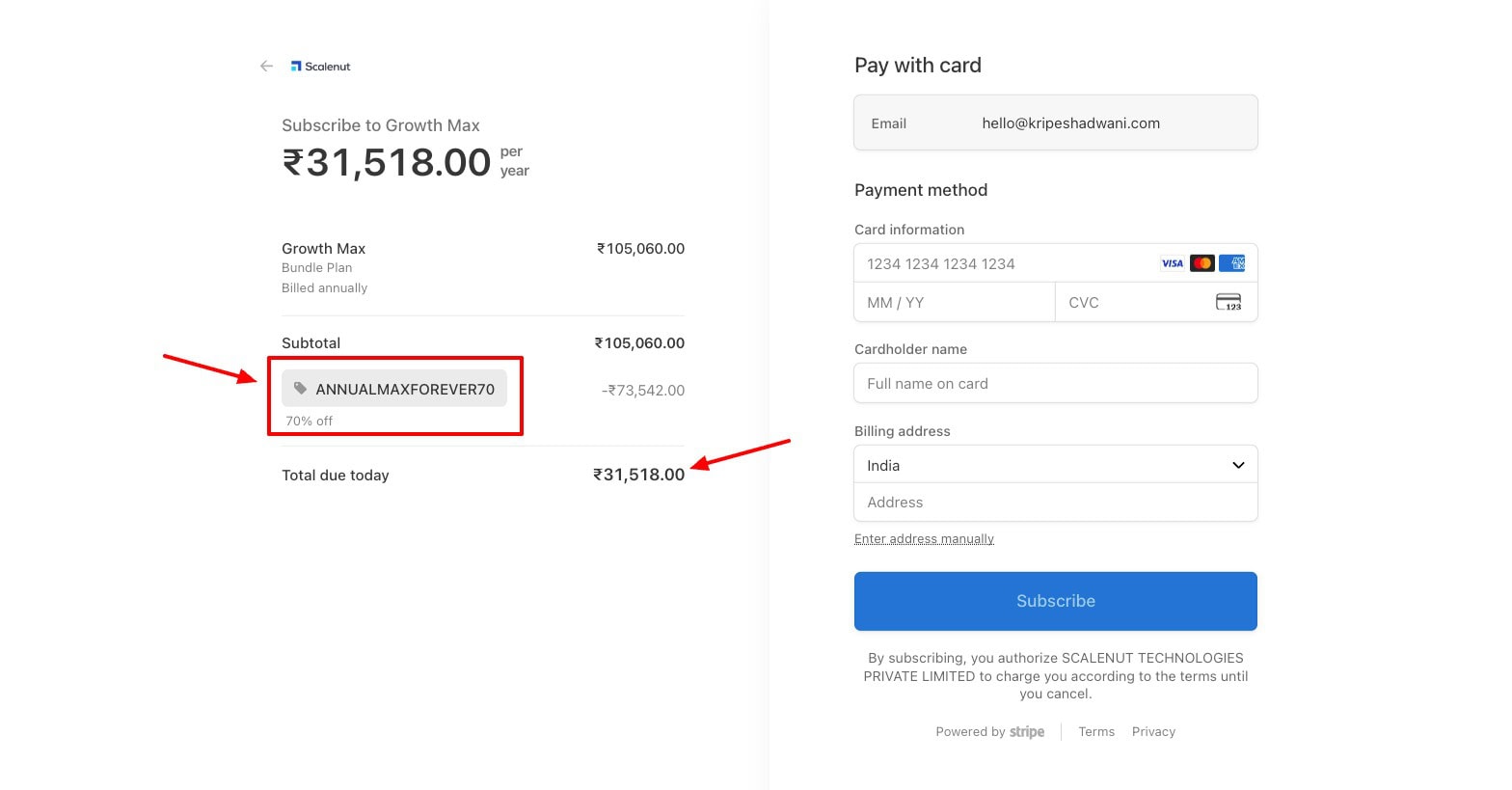 Scalenut BF deal - checkout