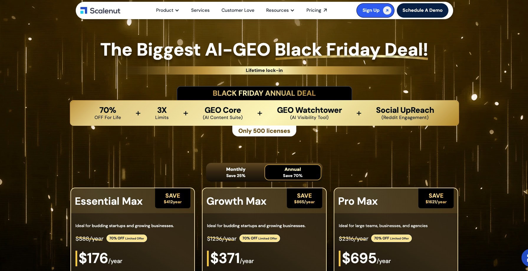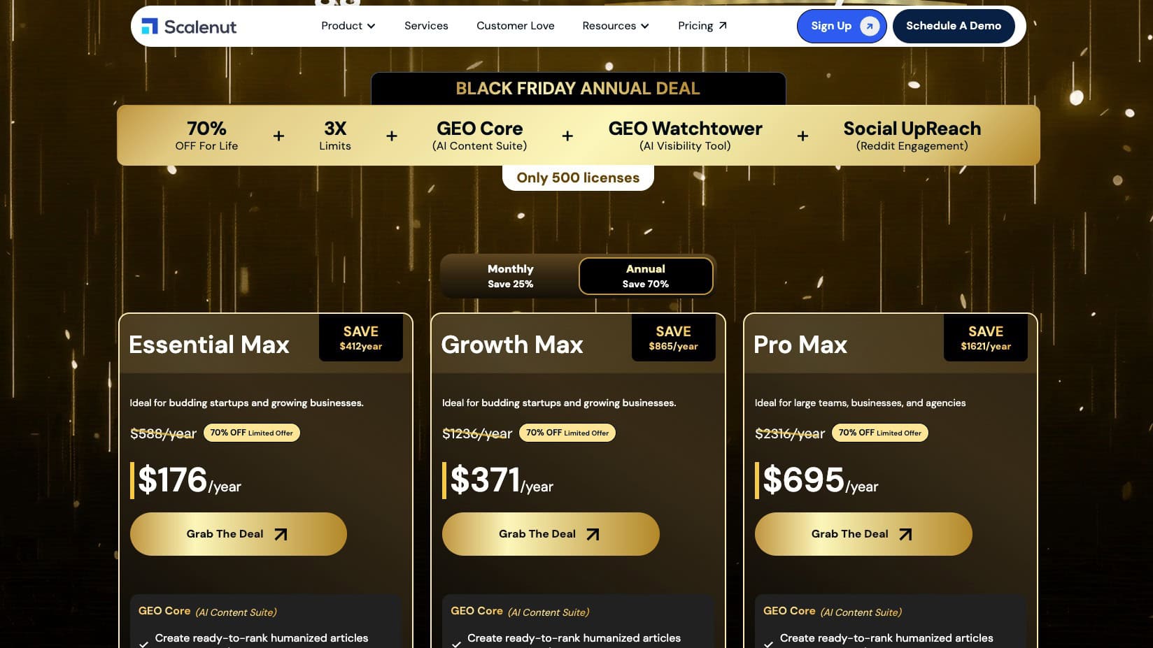 With this Scalenut Black Friday Deal, you’re getting incredible discounts on Scalenut AI Writer. It’s offering a massive 70% discount on its Max annual plans.