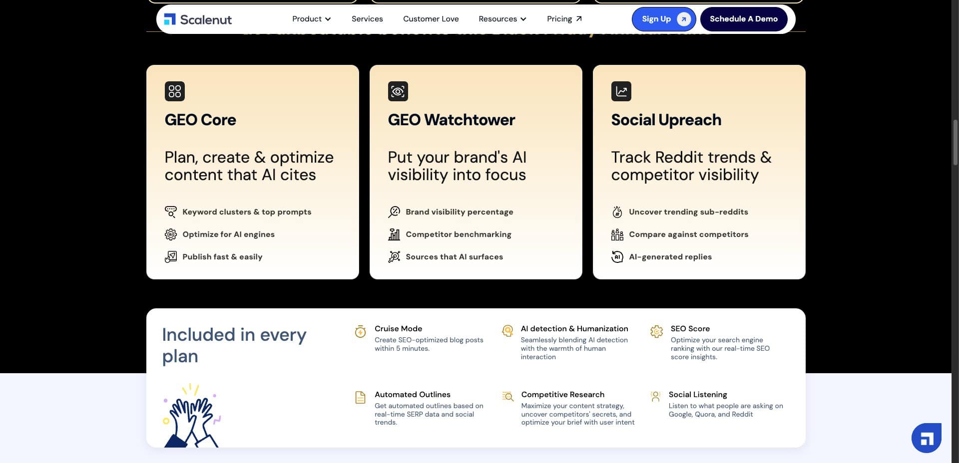 What’s more? You’re also getting 3x limits on all their features along with access to their GEO Core (AI Content Suite), GEO Watchtower (AI Visibility tool), and Social UpReach (Reddit engagement tool).