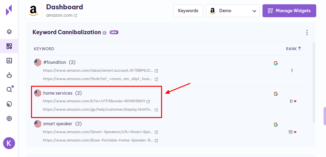 This section shows a list of URLs that are ranking for a common keyword. Using this information, you can make certain variations in your content and keywords to rank them for different keywords.