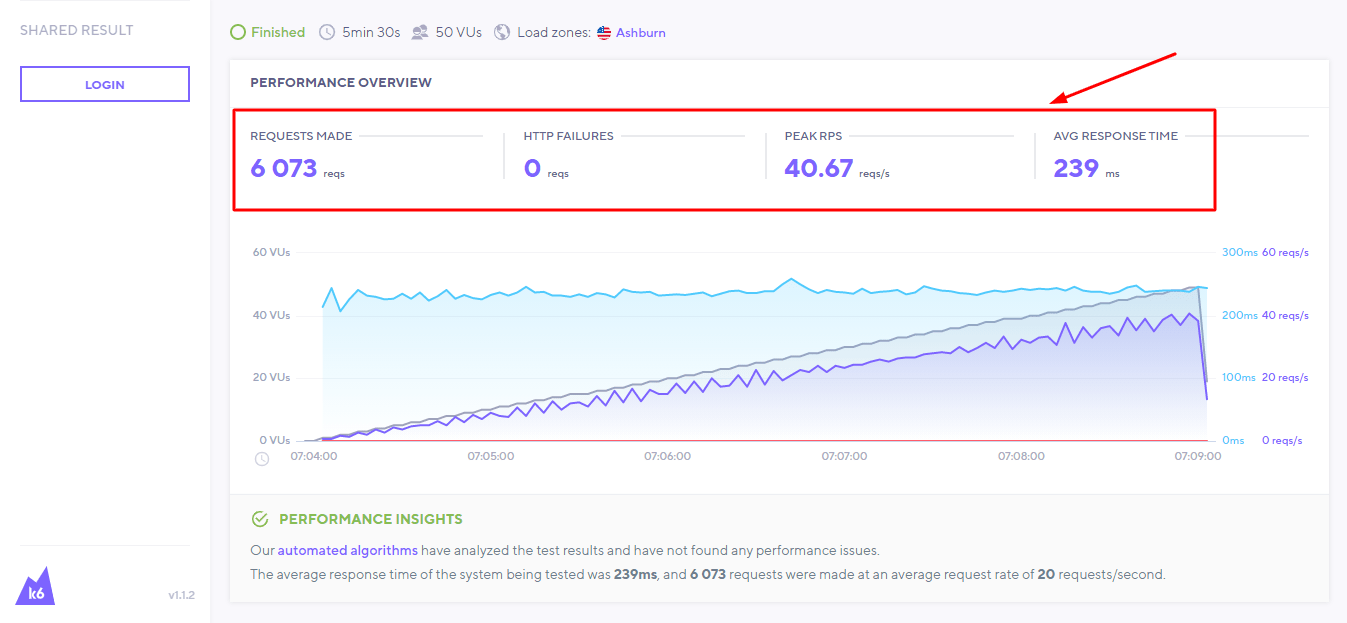 For this load test, I sent 50 virtual users from the US on my website in order to examine how it responds to real-time traffic.