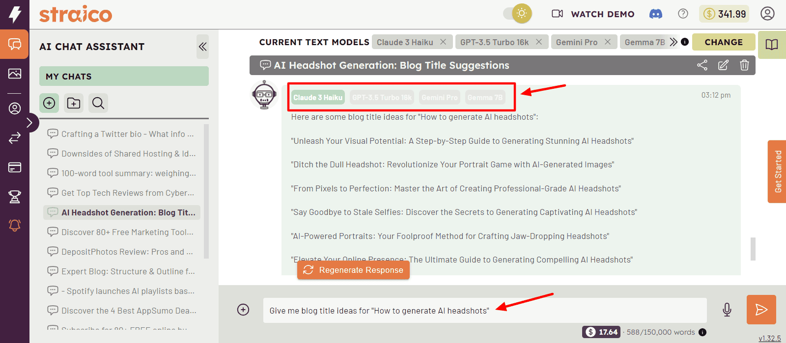 Similar to ChatGPT or Gemini, you can enter your prompt and get relevant results. However, with Straico, you can also select appropriate AI models while generating your results and choose the best draft out of all.
