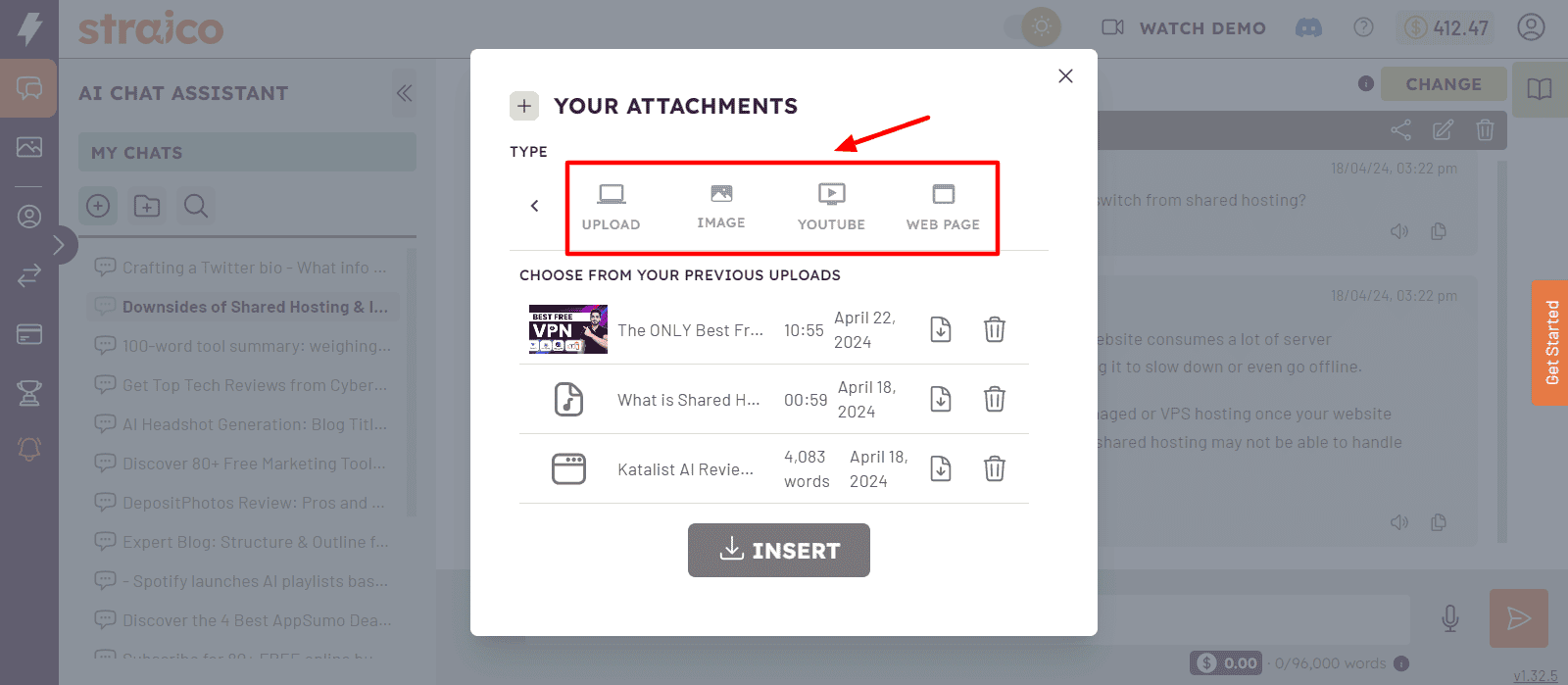 There are many ways to provide input to Straico. Where other AI assistants let you offer inputs via text or voice command, Straico also lets you upload a file, image, YouTube link, or webpage with your prompts. This is helpful if you wish to generate results about specific content.
