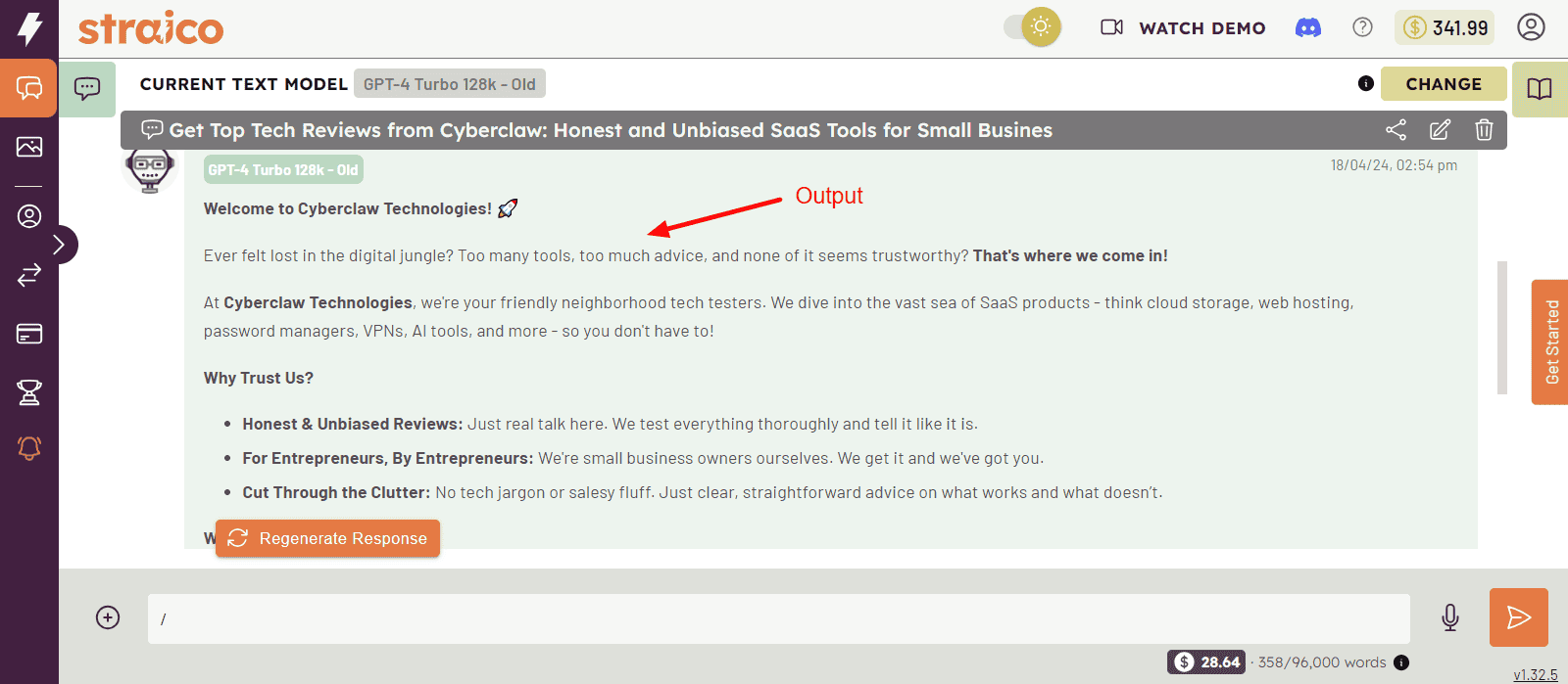 The results generated are different as per the AI language model. I liked the quality of the outputs produced and the way they were presented. They were divided into neat paragraphs with bullet points, bold highlights, and emojis.