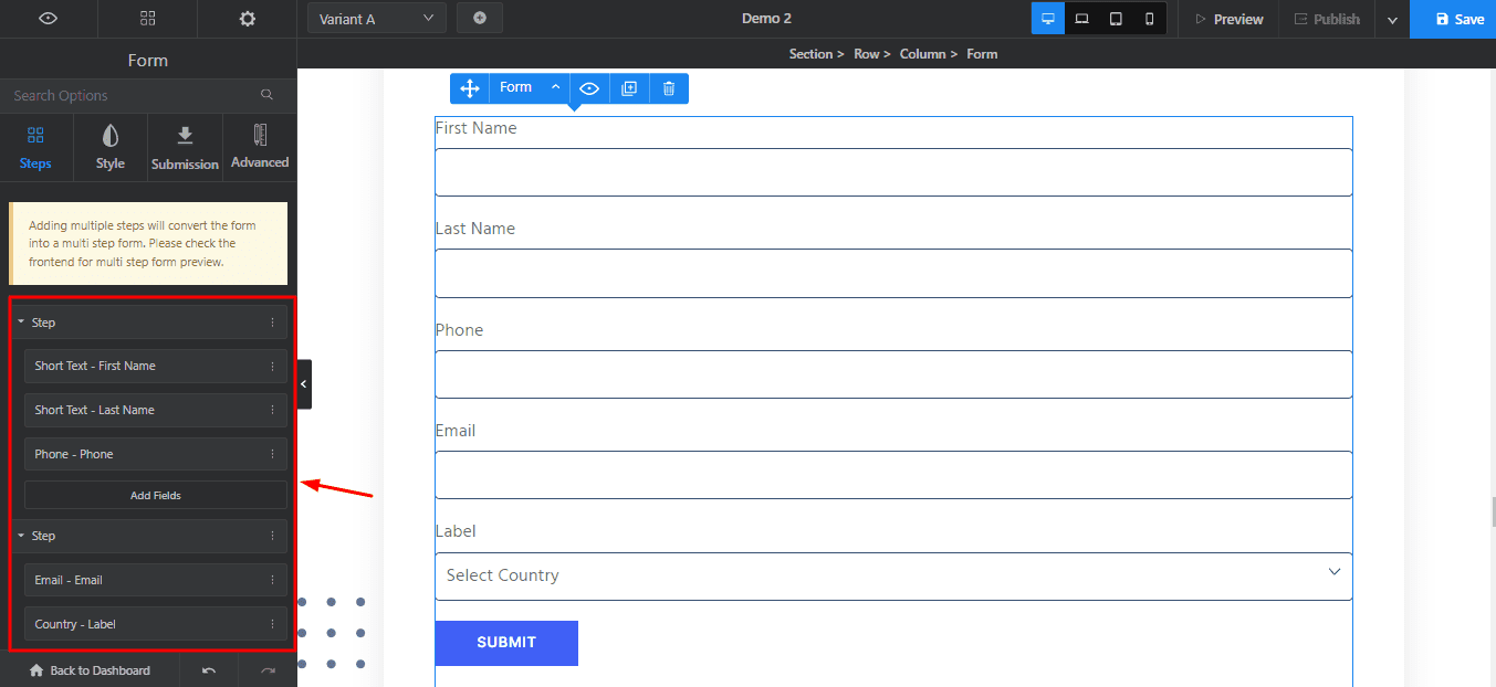 If you want to add forms on your page, the Forms element in Swipe Pages is a great option! It offers 13 pre-defined fields you can add to your forms, which is fantastic. However, you don’t get the option to add a custom field.