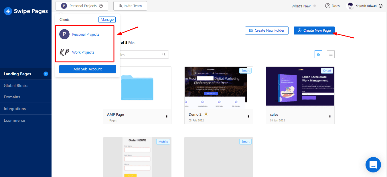 You can even create a different sub-account to work with different projects. For example, bakery and footwear can be two different sub accounts comprising multiple landing pages.
