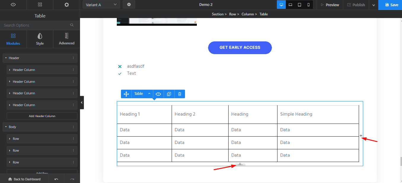 Swipe Pages offers 27 elements that can be accessed from the Modules tab under the Editor. You can simply drag and drop an element to add it into a section. Clicking on any element will display all the customization settings on the left panel.