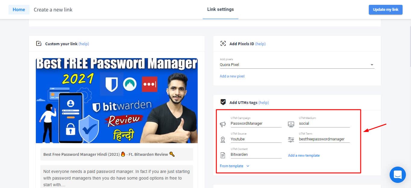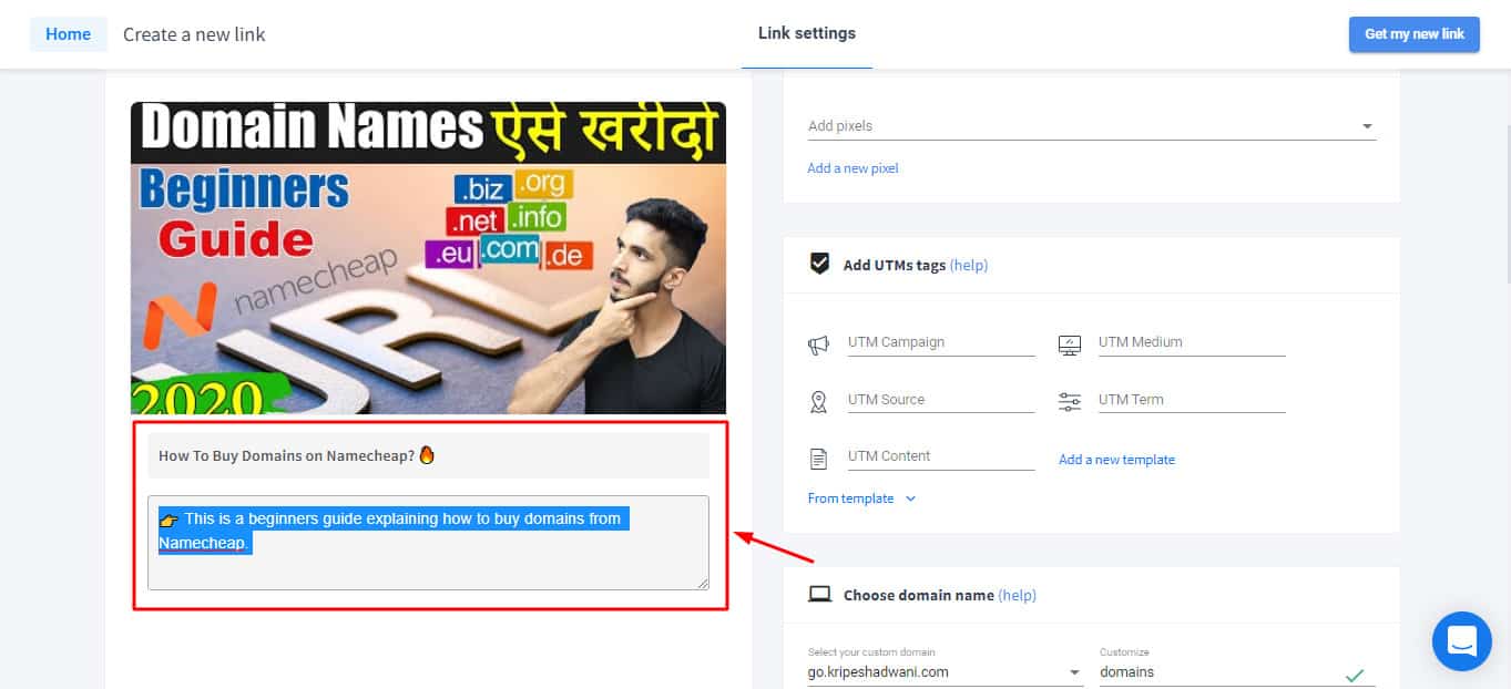 Here, you can customize your links to suit a specific platform. For example, before sharing your blog article on your Facebook feed, you can customize how it appears to your viewers. Let’s see how you can do that.