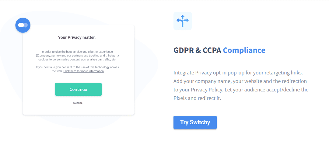 Switchy complies with the European and Californian Privacy Regulations. So, you can display a privacy pop-up if your audiences are from these countries.