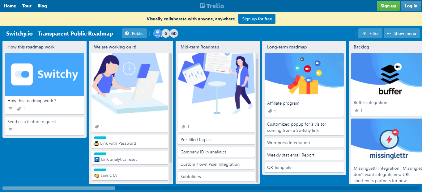 They also have an impressive and organized roadmap of features under construction. Currently, they are working on adding functions like Link with password, Link CTA, IP Blocking, etc to Switchy.
