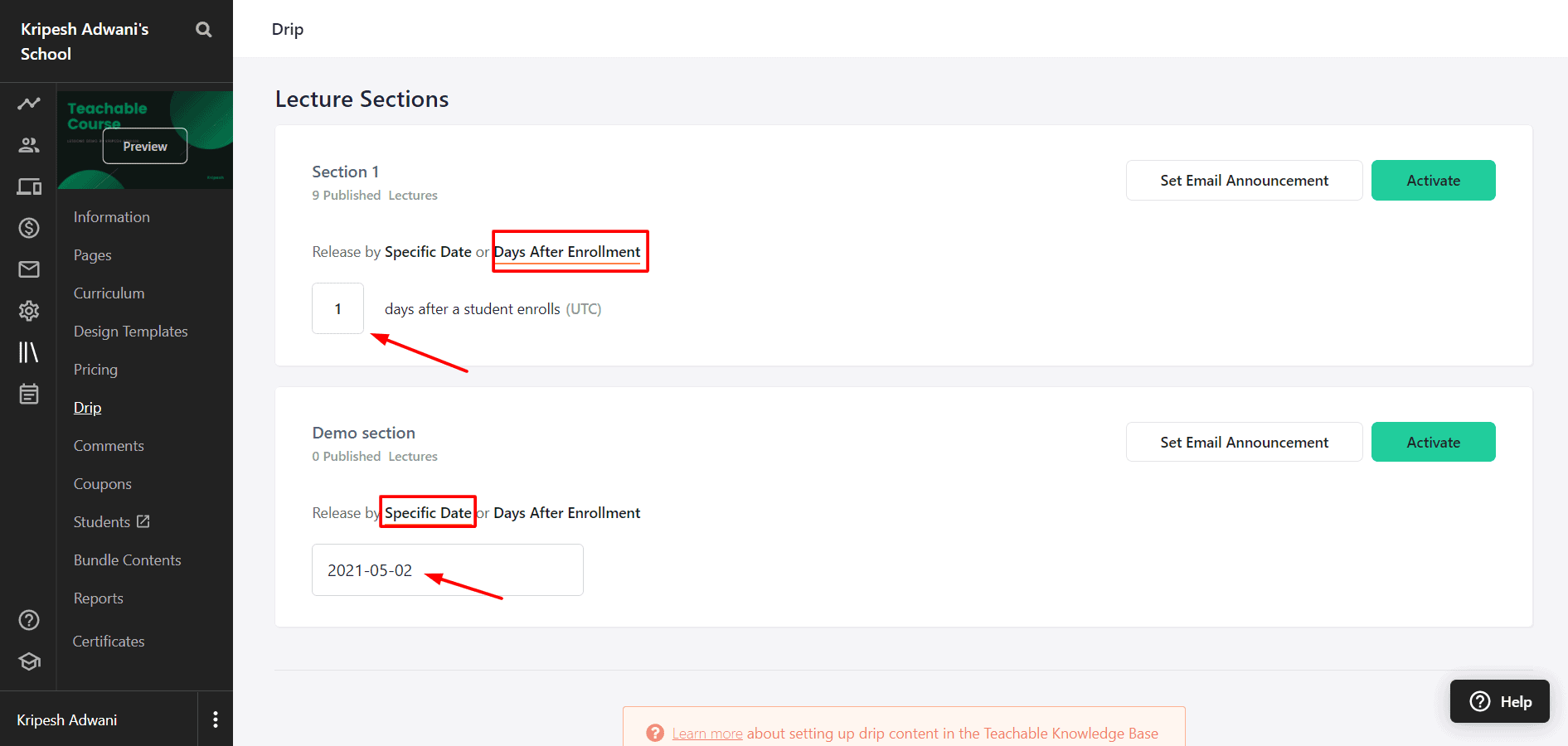 - Drip Content – Teachable vs Thinkific