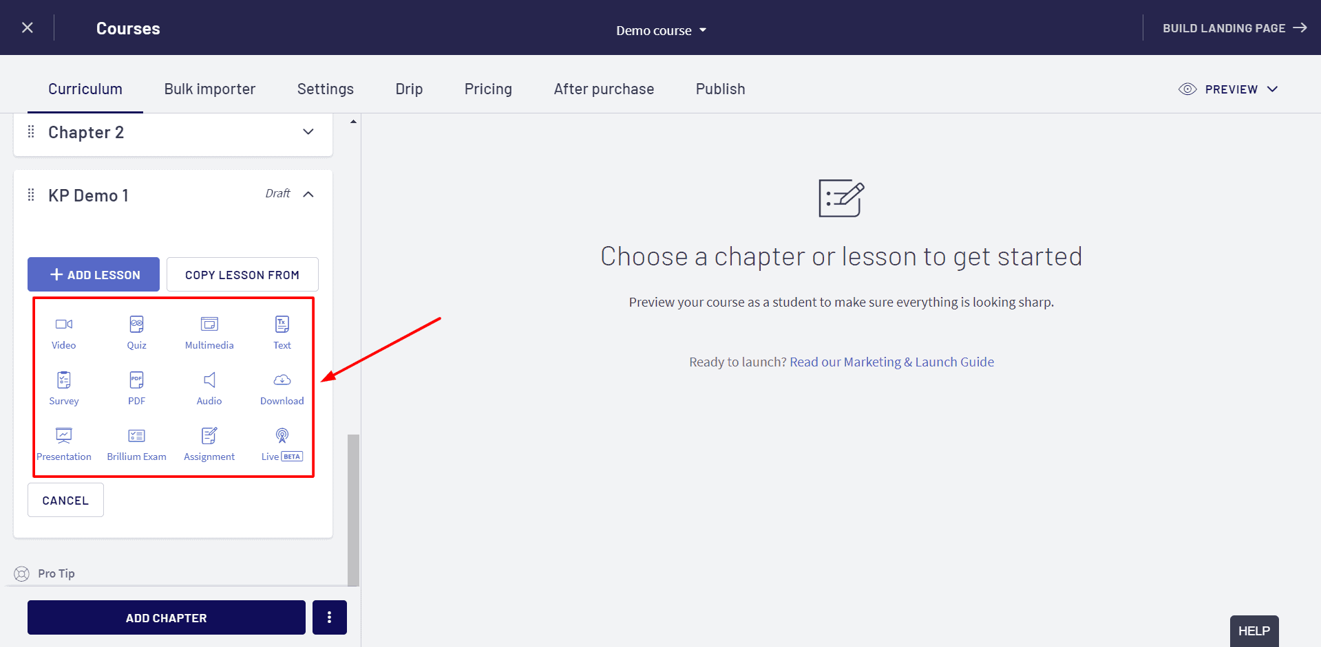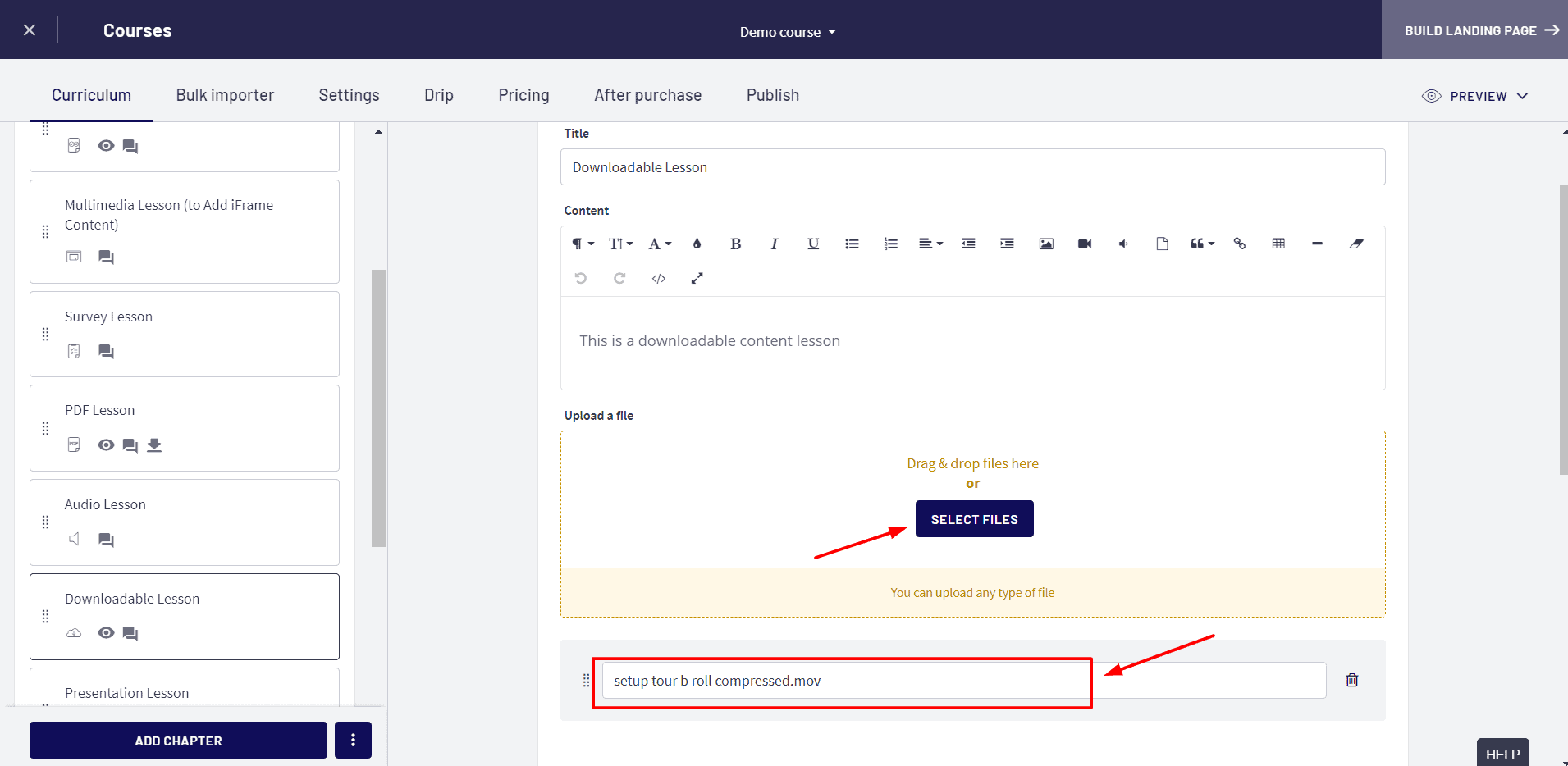 Thinkific’s Course Builder offers you a range of lesson types suitable for every possible topic. And not just that, it also supports drag-and-drop upload, which would save a lot of your time!
