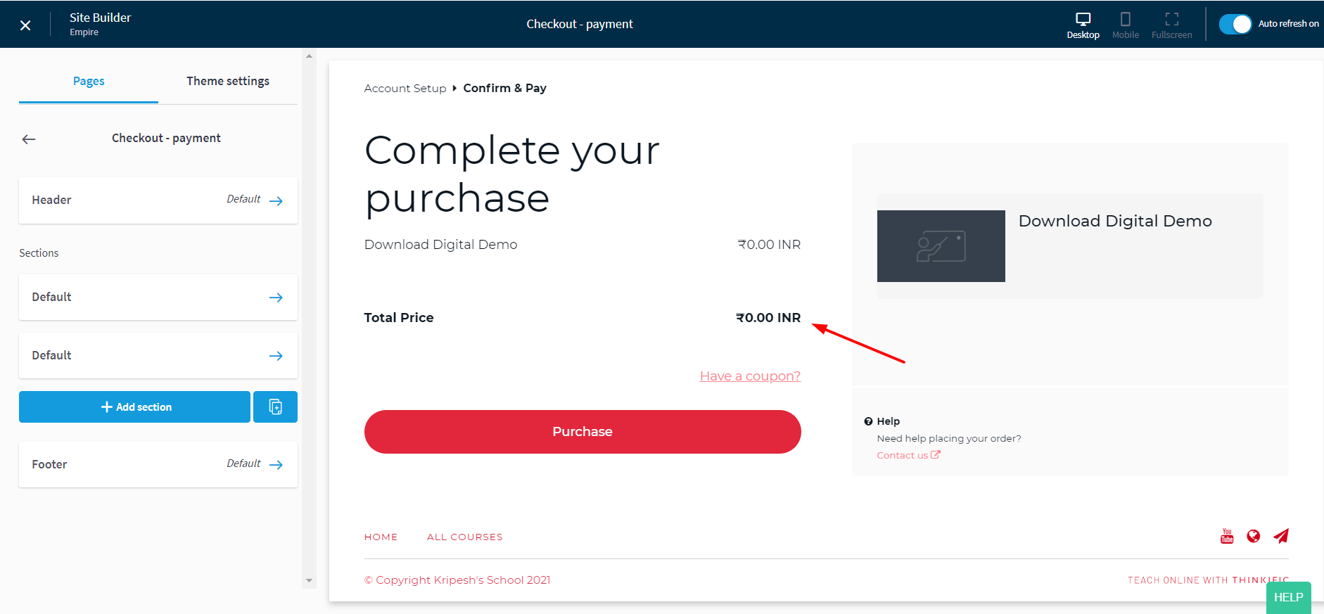 - Thinkific Site Builder