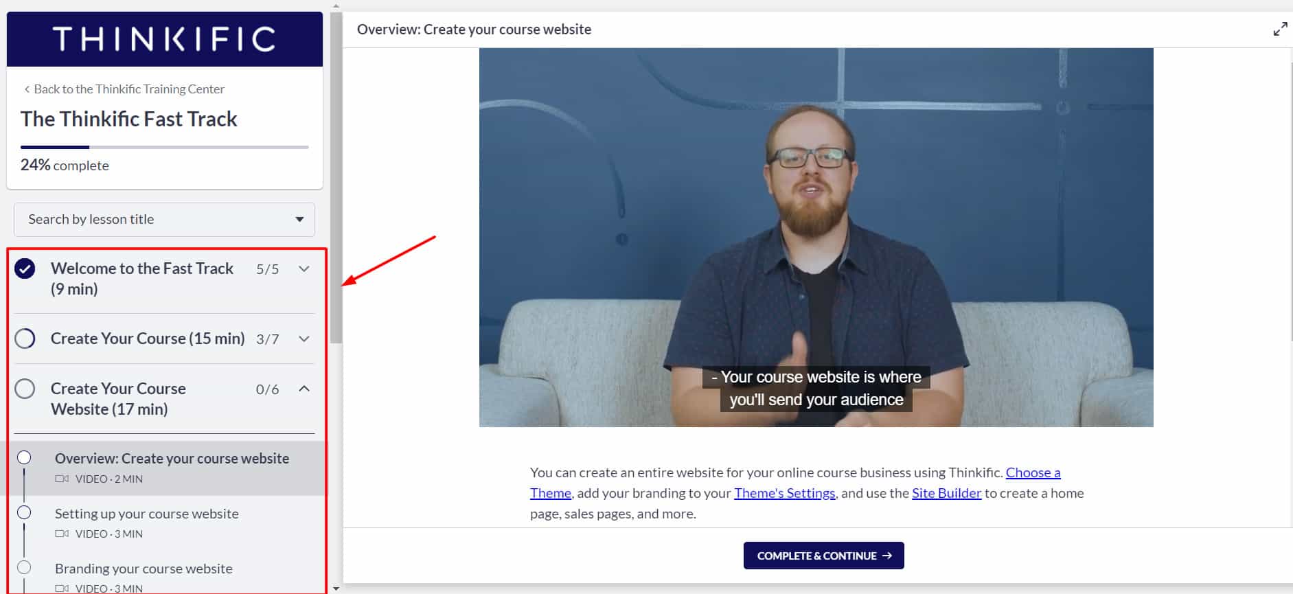 On their Training Center, they also offer a free course called ‘The Thinkific Fast Track’ to teach beginners about creating, promoting, and selling their courses efficiently.