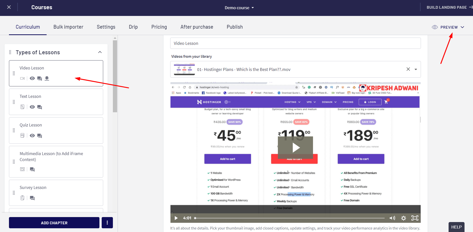 However, the lack of coding lessons along with a complex and buggy interface are some of its downsides. The pricing plans of Learnyst start from ₹3499/month. By using my link, you can get a 25% off on all paid plans of Learnyst. (Use coupon code: KRIPESH25)