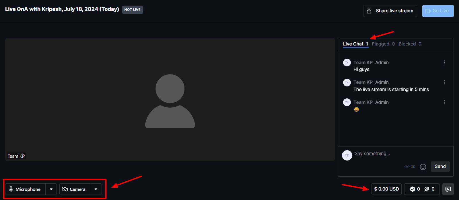 Finally, once all the changes are made, you can enter the Live Studio to check out the look and feel of your live stream. I wish they also had an option to add a background animation or countdown screen before the stream started.