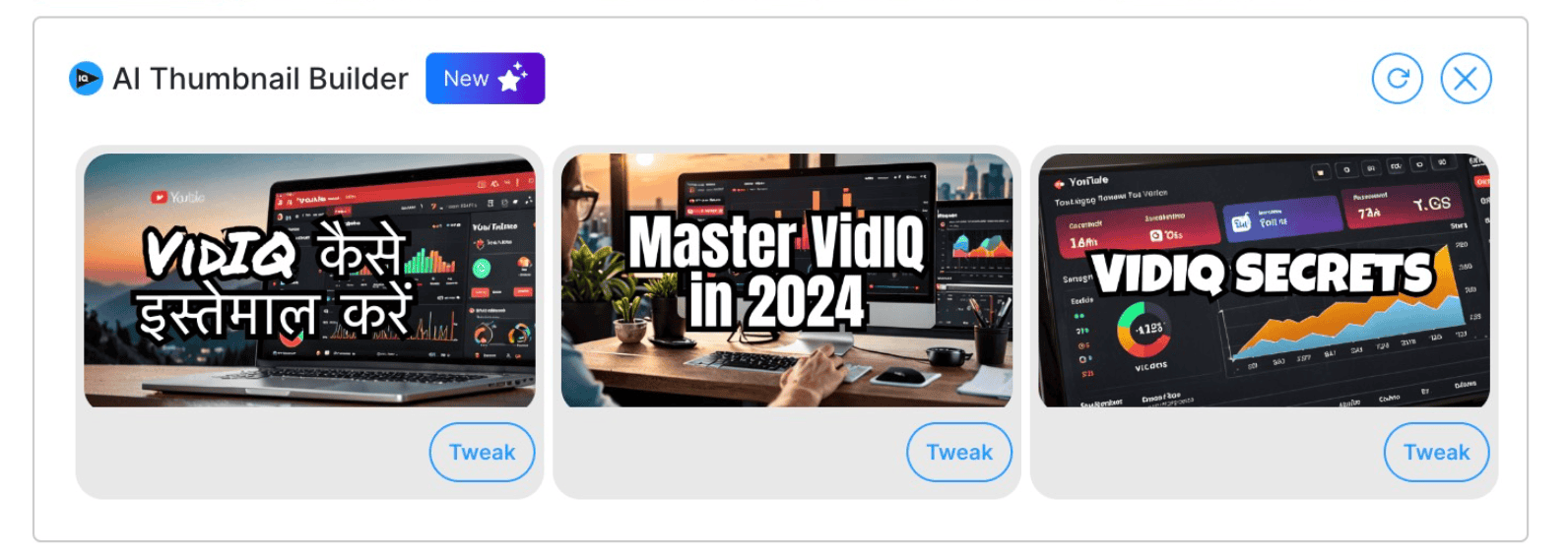 The Boost plan of VidIQ features AI tools like title generator, description generator, thumbnail generator, etc. These are not quite refined and need a lot of improvement.