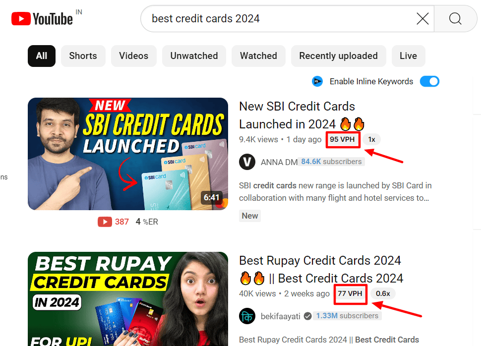 Let’s say we wish to create a video around ‘Best Credit Cards 2026’. When we enter this keyword on YouTube, we will get a list of the top videos created for it.